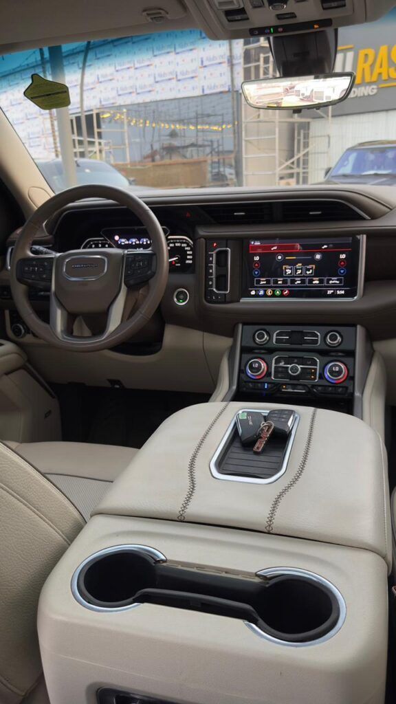 GMC Yukon Denali Model: 2021 Asking Price: AED 149,000 Mileage: 206,000 km ✓ Gulf Specifications Engine: V8 / 6.2L Full Option #1 Features: - Leather Seats - Panoramic Sunroof - Original Keys - Push-Button Start - Radar - Lane Departure Warning - 4×4 - Cruise Control - Heated and Cooled Seats - Power Seats - Power Liftgate - 360° Surround Cameras - Front and Rear Parking Sensors - Rear Entertainment Screens - Rear Climate Control - Steering Wheel Controls - Central Locking - Power Folding Mirrors - Seat Memory - Remote Start - Refrigerator - Wireless Charger - Head-