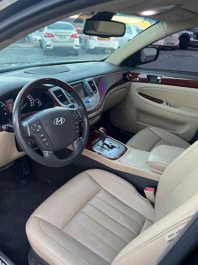 Hyundai Genesis 3.8 Top 2013 Features - ABS anti-lock brake system - Security system - Alloy rims - AUX - Bluetooth - CD player - Climate control - Cruise control - Fog lights - Keyless entry - Leather seats - Moonroof - Navigation system - Panoramic glass roof - Parking sensors - Power mirrors - Power steering - Push button start - Radio - Rear camera - MP3 Description Full option trim. Complete service history available. Totally accident-free car. One owner since new. Gulf specs model. Still on factory paint.