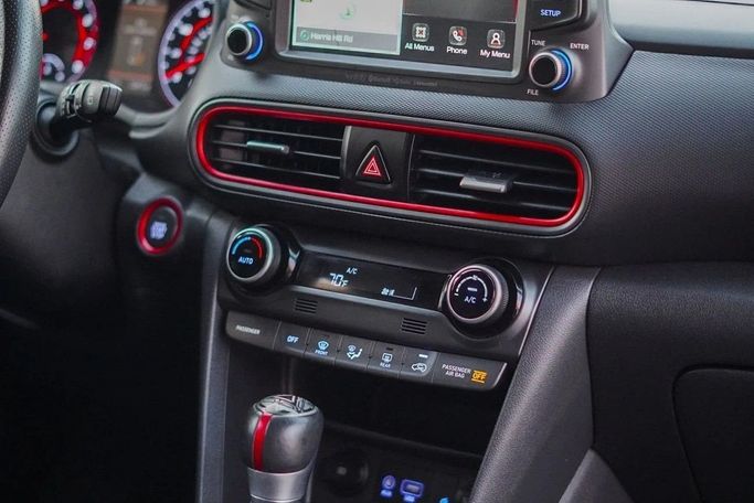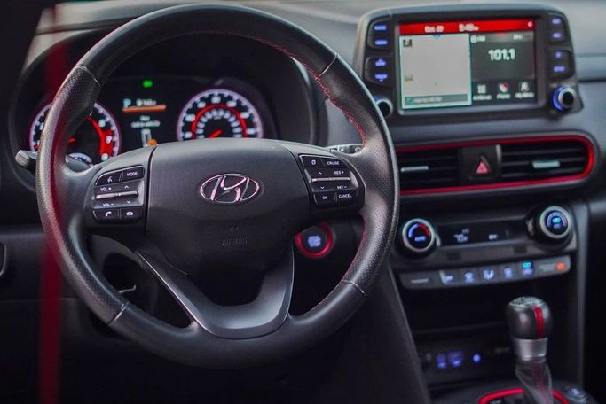 This 2019 Hyundai Kona, a first-generation five-door SUV, is finished in a quiet grey and powered by a 1.6-liter petrol engine delivering 177 horsepower. It's paired with an automated manual transmission (AMT) and all-wheel drive, providing smooth, direct responses with added traction in varied conditions. With American-spec configuration and a single previous owner, it presents a well-maintained history and practical, everyday usability, suitable for city commutes and weekend adventures alike. Inside, the Kona offers a compact yet comfortable cabin with user-friendly techn
