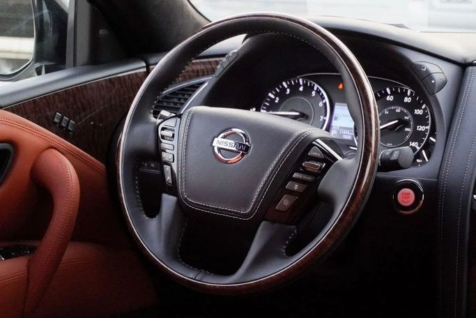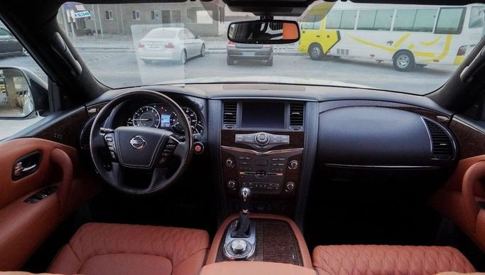 This used 2020 Nissan Armada II Facelift is a full-size five-door SUV in white, powered by a 5.6-liter petrol V8 delivering around 400 horsepower, paired with an automatic transmission and all-wheel drive. It has a single prior owner and 42,840 miles on the clock, presenting a well-kept example for its age. As an American-spec model, it combines confident highway manners with strong low-end torque and capable handling, while the AWD system helps maintain traction across conditions. The interior prioritizes space and everyday practicality, with a durable design that supports