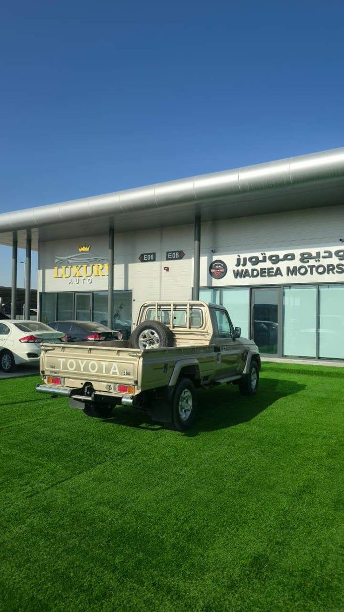 تويوتا لاند كروزر من فئة 70 Facelift 1 موديل صالون واحد مقطورة، مركبة بنظام دفع رباعي ومزودة بعلبة تروس يدوية ومحرّك بنزين سعة 4.0 لتر وقوة 228 حصان. اللون الذهبي يعكس حضوراً مميزاً، والحالة المستعملة مع سجل مالك واحد فقط تدعمها عدّادات ميلاً منخفضة يبلغ 110,000 كم تقريباً. هذا الطراز يأتي بتصميم قوي وموثوق لأداء الطرق الوعرة والطرق الوعرة في نفس الوقت، مع مواصفات GCC وراحة قيادة مناسبة، إضافة إلى قوة سفلية وتجاوب سريع مع ناقل الحركة اليدوي. تجربة القيادة هنا تجمع بين متانة البناء ومرونة الاستخدام اليومي، مع فايته الرباعي الدائم ووزن مناسب يدعمان الثبات على مختلف الأسطح. إذ