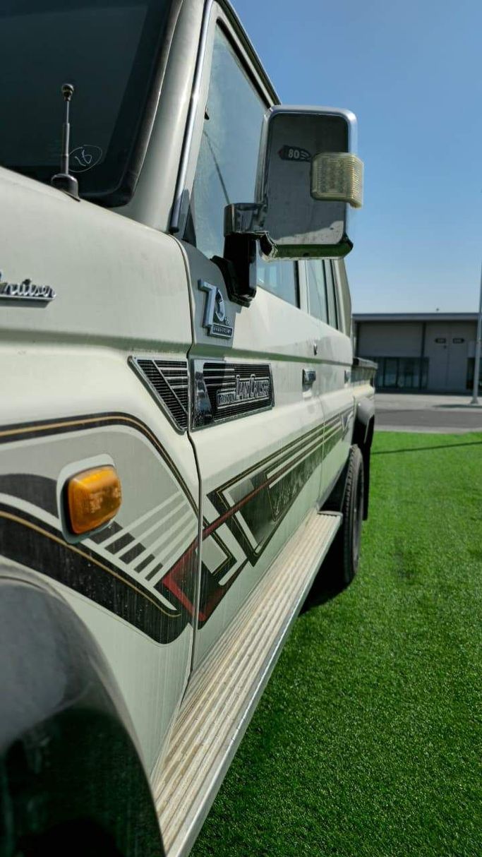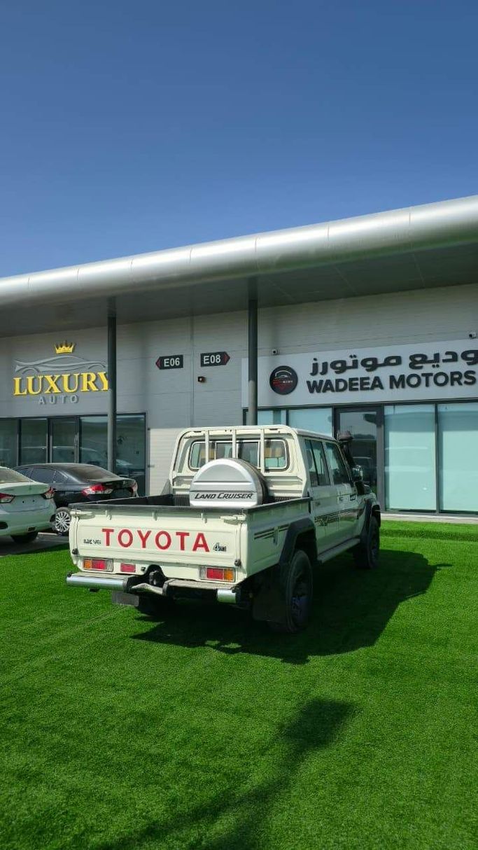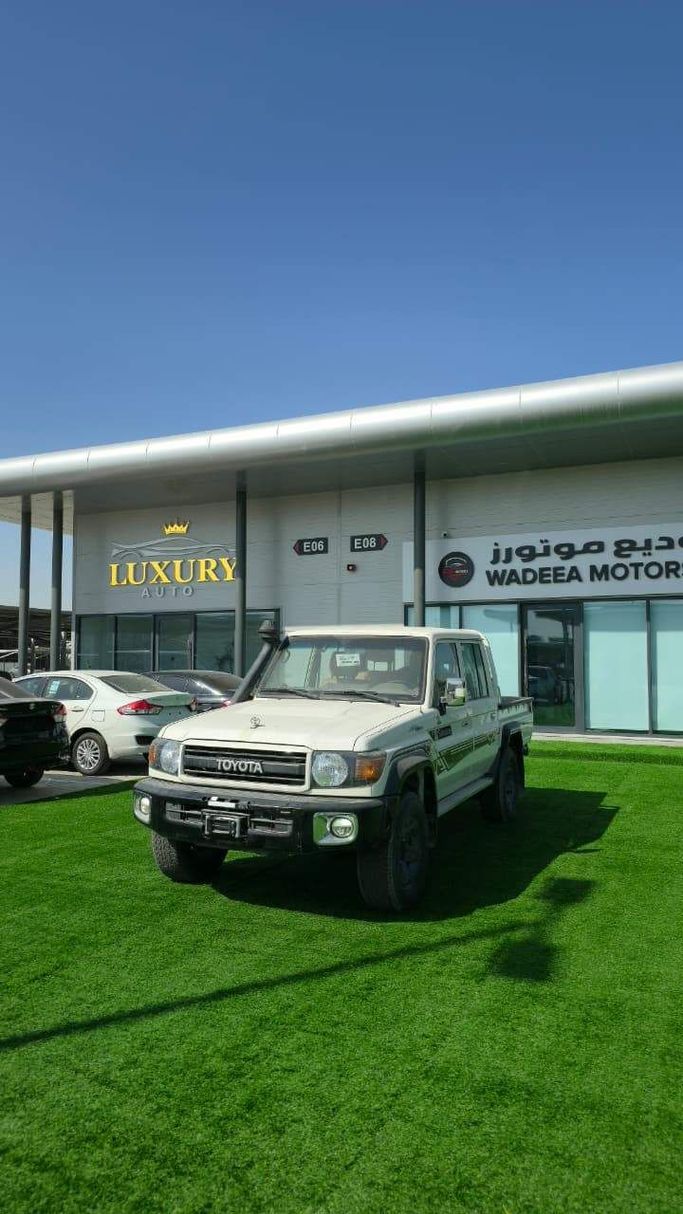 تی-بلا من سيارات تويوتا لاند كروزر 70 سلسلة فِيس-لابت مع كابينة مزدوجة، نسخة جديدة لعام 2022، بمحرك بنزين سعة 4.0 لتر بقوة 228 حصان وناقل حركة يدوي. النظام دفع كُلي (AWD) يمنح الثبات والقدرة على الطرق المختلفة، مع ناقل حركة يدوي يعطي تجربة قيادة مباشرة وممتعة. التصميم الخارجي بلون أبيض أنيق يبرز حضور السيارة، بينما تجمع المقصورة بين الرحابة والراحة مع تجهيزات موثوقة تناسب الاستخدام اليومي والرحلات الطويلة. هذه النسخة GCC Specifications مناسبة للسوق الخليجية، وتأتي بمعدل عدّاد أميال صفر تقريباً مع ضمان الحالة الجديدة، ما يجعلها خياراً متيناً لمن يبحث عن مزيج من القوة والاعتم