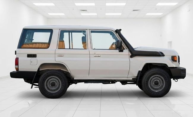 New for 2025, the Toyota Land Cruiser 70 Series Facelift 2 is a rugged, 5-door SUV built to handle demanding terrain while remaining practical for everyday use. It runs a 4.2-liter diesel delivering 131 hp, with ample low-end torque that supports steady progress on rough surfaces, and paired with all-wheel drive and a manual transmission for direct control in varying conditions. The white exterior emphasizes a timeless, utilitarian look, enhanced by the facelift’s refreshed styling details. Inside, the layout is straightforward and durable, prioritizing comfort and practica