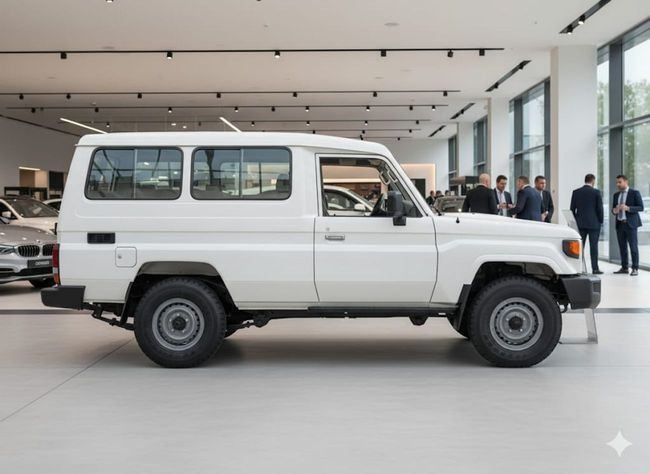 This new 2025 Toyota Land Cruiser 70 Series Facelift 2 is a 5-door SUV finished in white. It is powered by a 4.2-liter diesel engine delivering 131 hp, paired with a manual transmission and all-wheel drive, offering reliable torque and straightforward shifting for everyday use and varied terrain. The 70 Series retains its rugged identity while incorporating the facelift’s refreshed details, with the regional specification noted as Other to reflect its global suitability. Built for durability and long-term value, this Land Cruiser emphasizes practical design, simple mechanic