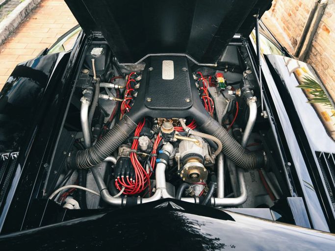 This version — the anniversary one — is the final, glorious meltdown of the ’80s. Bertone built it like a birthday cake on steroids: more vents, more skirts, more spoilers, more everything. Every panel screams, “Look at me, you fool!”