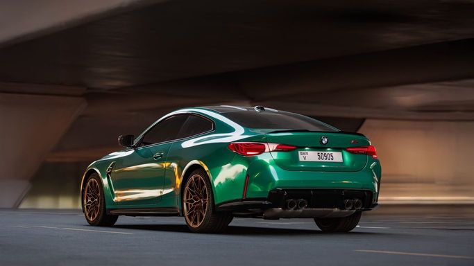 Experience the thrill of driving the remarkable BMW M4 in a captivating green hue, available for rent at AVA Car Rental. This powerful coupe, with its vibrant orange interior and seating for up to four passengers, offers the perfect blend of elegant style and unbridled performance. Accelerating from 0 to 100 km/h in just 3.7 seconds, it delivers an exhilarating drive on the UAE’s roads, where every movement becomes an art form. The unique design of the M4 not only turns heads but also showcases the advanced technology embedded in this stunning vehicle. Imagine cruising dow