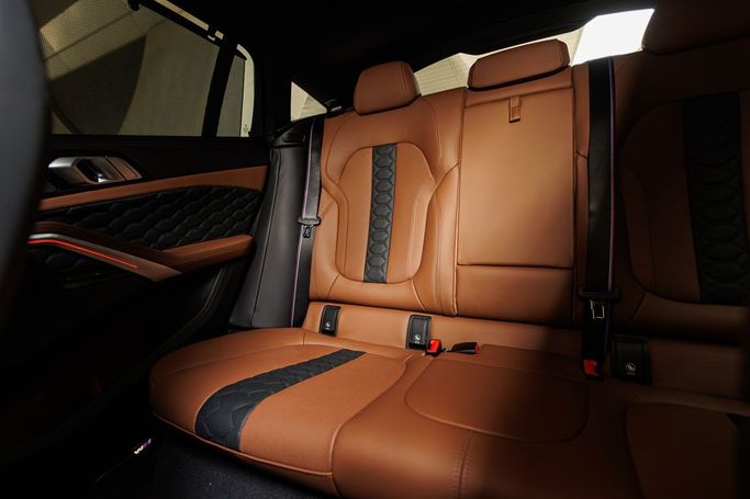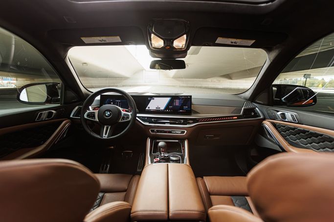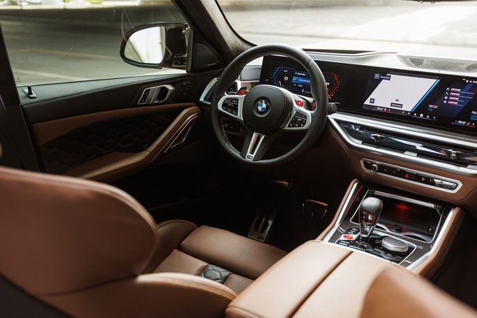 Immerse yourself in a world of luxury and dynamism with our stunning BMW X6 M—a true symbol of power and style. With a commanding 625 horsepower and an acceleration time of just 3.9 seconds from 0 to 100 km/h, this SUV is the perfect choice for confidently navigating the enchanting streets of the United Arab Emirates. The striking orange exterior of this vehicle turns heads wherever you go, while the brown leather interior offers an atmosphere of comfort and elegance. With spacious seating for up to five passengers, every journey becomes a delightful experience. Advanced t