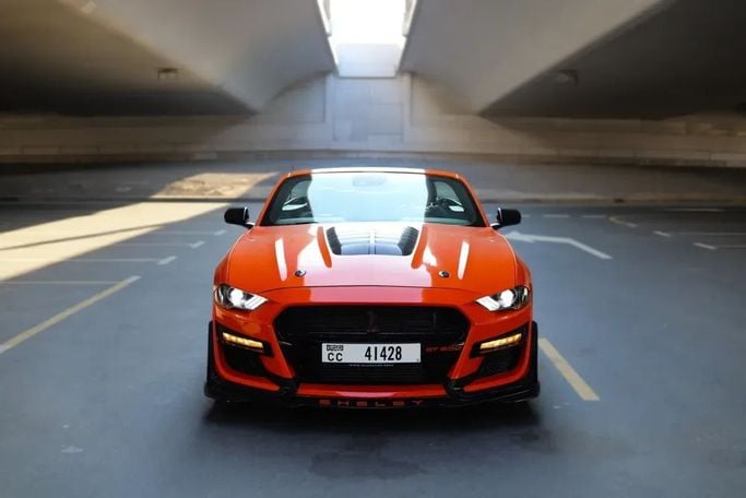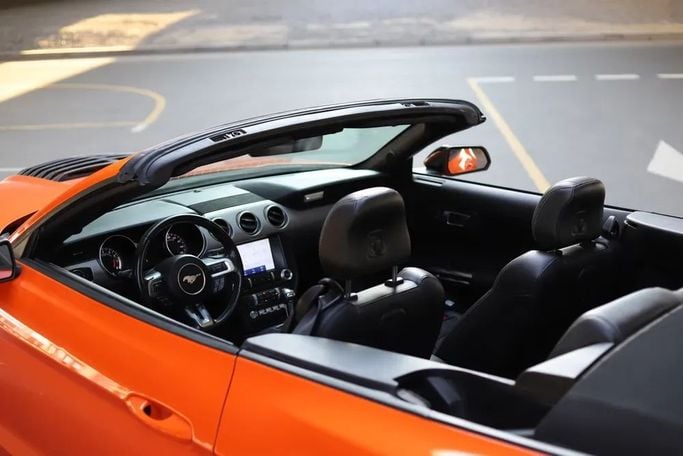Погрузитесь в мир адреналина и стиля с великолепным оранжевым Ford Mustang VI Рестайлинг от Alligator Car Rental. Этот кабриолет — настоящий путеводитель по дорогам ОАЭ, предлагая непревзойденное сочетание мощи и элегантности. Мощный двигатель объемом 5.0 литров с впечатляющими 450 л.с. разгоняет вас до 100 км/ч всего за 4.8 секунды и способен развивать максимальную скорость в 250 км/ч. Представьте себе, как ветер играет ваши волосы, пока вы мчитесь по жемчужным пляжам Дубая, наслаждаясь свободой, которую дарит этот автомобиль. С комфортом для четырех пассажиров и стильным