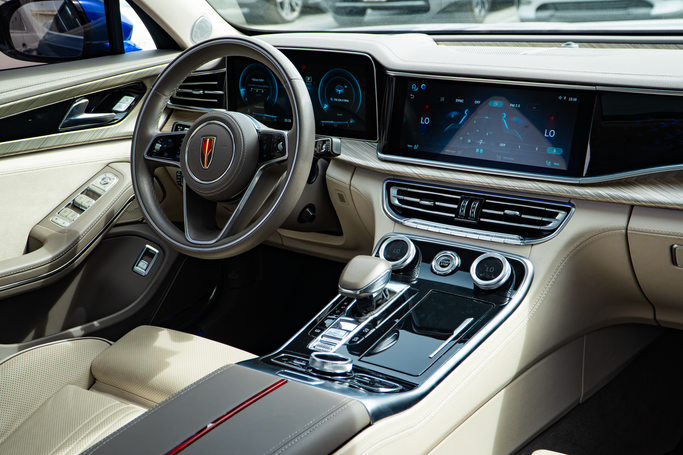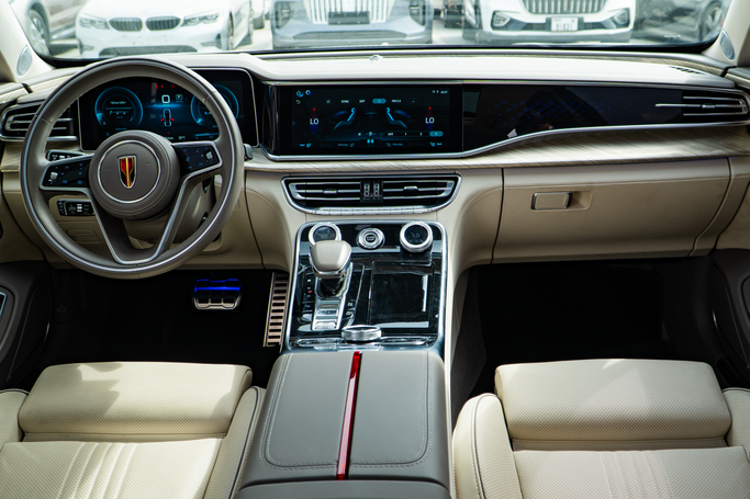 The 2023 Hongqi H9, Generation I, is a navy blue sedan that blends refined styling with a comfortable, thoughtfully designed interior. Under the hood, a 2.0-litre engine delivers 252 horsepower (about 185 kW) and is paired with an automated manual transmission for smooth, controlled gear changes. Rear-wheel drive provides balanced handling and a steady feel on a variety of road surfaces, while the beige interior offers a calm, upscale ambiance with easy-to-use controls and supportive seating for everyday comfort. The cabin is designed for quiet operation and practical use,