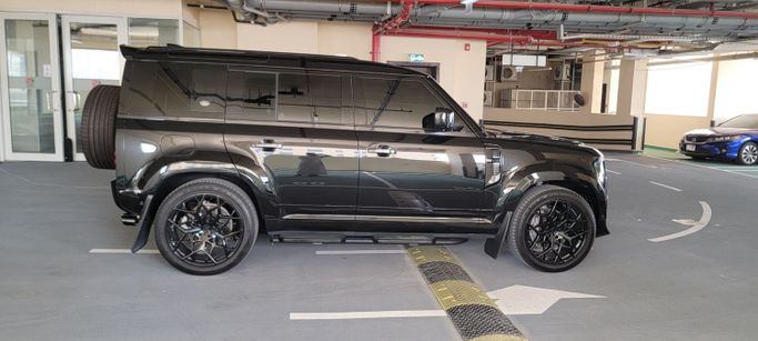 Experience the thrill of driving the iconic Land Rover Defender, a masterpiece of engineering and luxury, brought to you by High Voltage Car Rental LLC. This striking black SUV, with its sumptuous brown interior, perfectly blends ruggedness and sophistication, making it the ideal companion for your adventures in the breathtaking landscapes of the UAE. Whether you’re exploring the majestic dunes of the Arabian desert or cruising along the stunning coastlines, the Land Rover Defender II promises an exhilarating ride. With a powerful 635 horsepower engine that accelerates fro