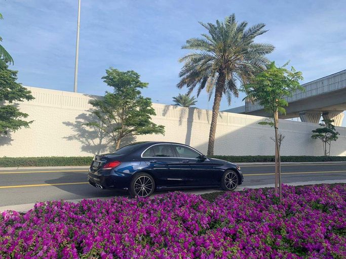 The 2021 Mercedes-Benz C300 is a luxury compact car featuring a sleek exterior with a diamond grille and LED lighting, a comfortable interior with a 5-seater capacity, and a 2.0L turbocharged four-cylinder engine producing approximately 255-258 horsepower. Standard features include automatic transmission, rear-wheel drive, a sunroof, and safety technologies like ABS and airbags. Exterior Features Design: Sleek, modern exterior with aerodynamic lines and sculpted surfaces. Grille: Distinctive front grille with the integrated Mercedes-Benz star. Lighting: LED headlights