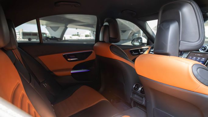 We invite you to experience the pinnacle of luxurious driving with AVA Car Rental. Discover the unique opportunity to rent a pristine white Mercedes-Benz C-Class V (W206), the perfect companion for travel and business engagements amidst the stunning landscapes of the United Arab Emirates. This elegant model, featuring a brown interior and a spacious sedan design, is ideal for those who value both comfort and style. The Mercedes-Benz C-Class accelerates from 0 to 100 km/h in just 7.3 seconds, making it not only sophisticated but also a dynamic driving machine. With a top sp