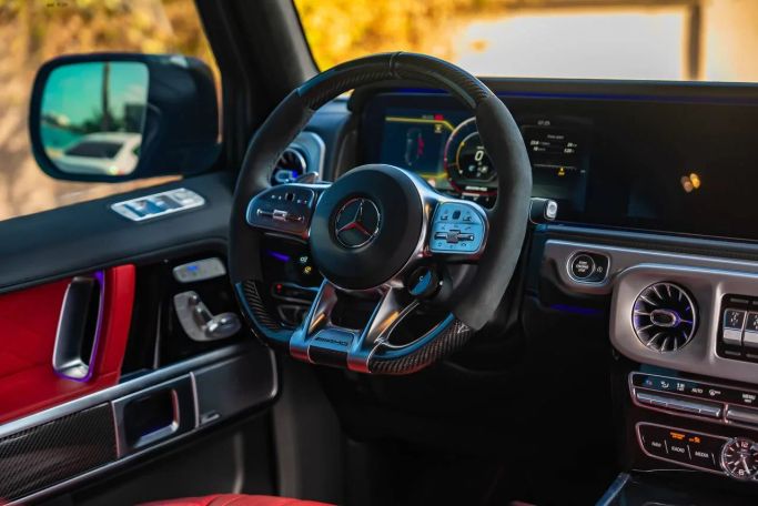The Mercedes-Benz G63 is an iconic SUV that combines power, luxury and unrivaled cross-country ability. Equipped with a 4.0-liter V8 biturbo engine producing 585 hp, it accelerates to 100 km/h in 4.5 seconds, while remaining unshakable on any surface. The racing character of the G63 is emphasized by an aggressive design with a characteristic radiator grille and wide wheels, and the interior is made of the most expensive materials, providing comfort and style at the highest level. The Mercedes G63 is a car for those who are looking for the perfect combination of power, styl