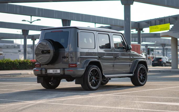 Elevate your driving experience in the stunning landscapes of the UAE with the unrivaled Mercedes-Benz G-Class, now available for rent at Macan Luxury Motors. This iconic SUV, presented in a striking grey exterior paired with a luxurious red interior, seamlessly combines elegance, performance, and sheer power. Imagine cruising along the golden dunes of Dubai or navigating the vibrant streets of Abu Dhabi in a vehicle that exudes strength and sophistication. With a robust 4.0-liter V8 engine generating an impressive 422 horsepower, the G-Class accelerates from 0 to 100 km/h