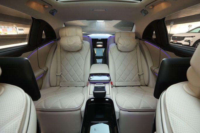 Discover a world of luxury and comfort with AVA Car Rental’s exclusive offer: the rental of the elite second-generation Mercedes-Benz Maybach S-Class sedan. This pristine white vehicle seamlessly combines style, power, and cutting-edge technology, making it the perfect choice for traveling through the vibrant streets of the UAE. Step into an atmosphere of sophistication as you settle into the spacious interior, elegantly designed in soft white tones, crafted for maximum comfort. With four cozy seats, you can enjoy the ride with friends or loved ones, while the powerful 6.0