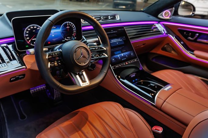 Immerse yourself in the world of luxury and power with our stunning Mercedes-Benz S-Class AMG, available for rent at AVA Car Rental. This sleek black beauty with a rich brown leather interior promises not only comfort but also unforgettable emotions on the roads of the UAE. With a maximum output of 802 horsepower and acceleration from 0 to 100 km/h in just 3.3 seconds, the S-Class AMG is not just a car—it’s a masterpiece of engineering. Its optimized 4.0-liter engine delivers incredible torque, allowing you to effortlessly conquer any road, whether it’s the scenic routes a