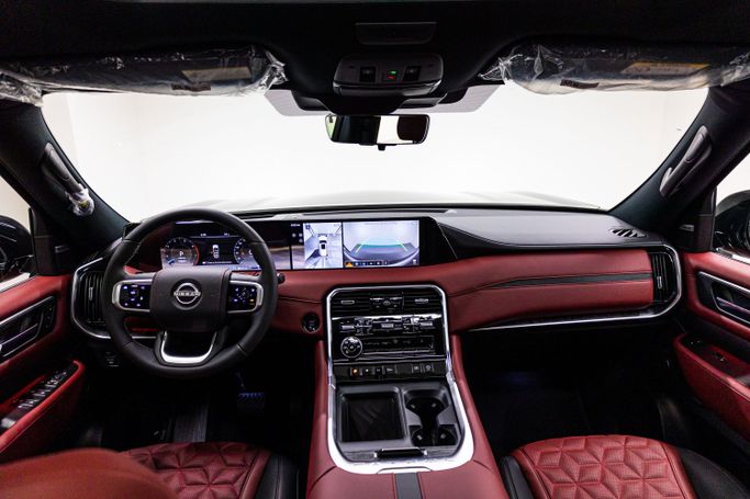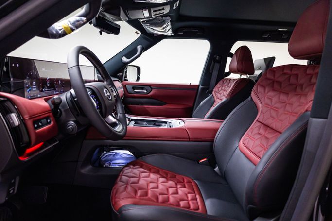 The Nissan Patrol LE Platinum 2025 is a luxurious SUV known for its off-road capabilities, premium comfort, and advanced technology. With a commanding presence and spacious interior, it’s the perfect vehicle for both city driving and adventurous journeys. Exterior: ◾ Bold and rugged design with a powerful front grille ◾ LED headlights with signature daytime running lights for enhanced visibility ◾ 20-inch alloy wheels that provide both style and durability ◾ Chrome accents throughout, adding a touch of elegance to its rugged profile ◾ Roof rails for added utility and conve