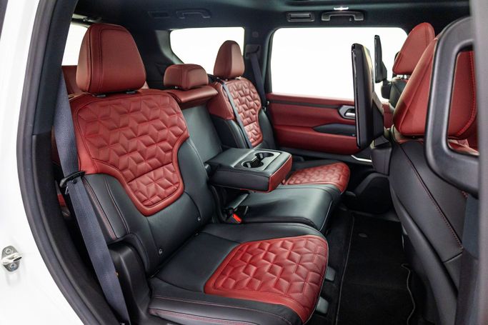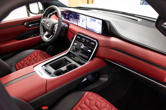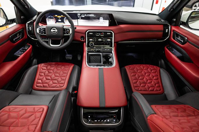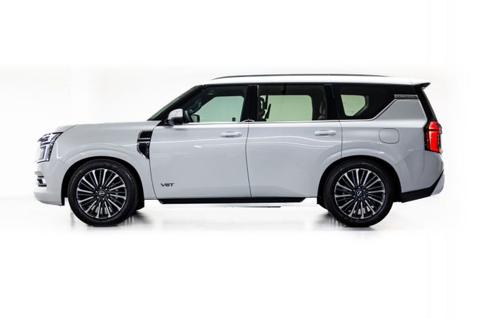 The Nissan Patrol LE Platinum 2025 is a luxurious SUV known for its off-road capabilities, premium comfort, and advanced technology. With a commanding presence and spacious interior, it’s the perfect vehicle for both city driving and adventurous journeys. Exterior: ◾ Bold and rugged design with a powerful front grille ◾ LED headlights with signature daytime running lights for enhanced visibility ◾ 20-inch alloy wheels that provide both style and durability ◾ Chrome accents throughout, adding a touch of elegance to its rugged profile ◾ Roof rails for added utility and conve