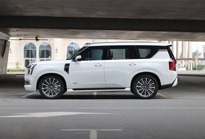 The Nissan Patrol LE Platinum 2025 is a luxurious SUV known for its off-road capabilities, premium comfort, and advanced technology. With a commanding presence and spacious interior, it’s the perfect vehicle for both city driving and adventurous journeys. Exterior: ◾ Bold and rugged design with a powerful front grille ◾ LED headlights with signature daytime running lights for enhanced visibility ◾ 20-inch alloy wheels that provide both style and durability ◾ Chrome accents throughout, adding a touch of elegance to its rugged profile ◾ Roof rails for added utility and conve