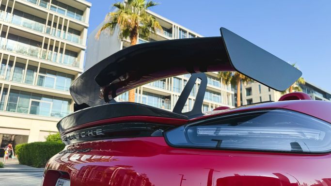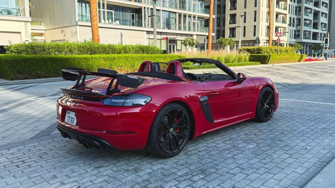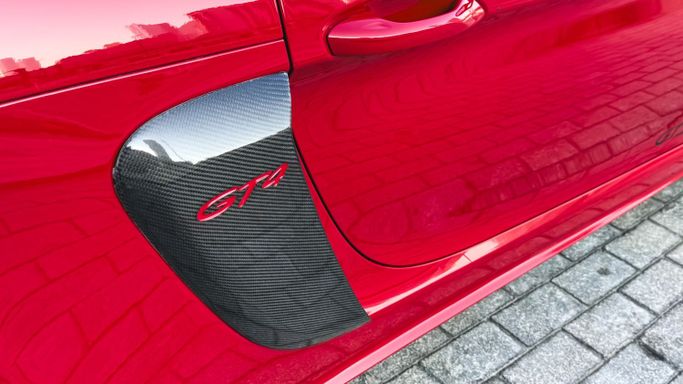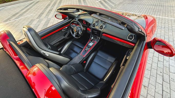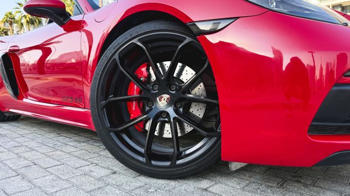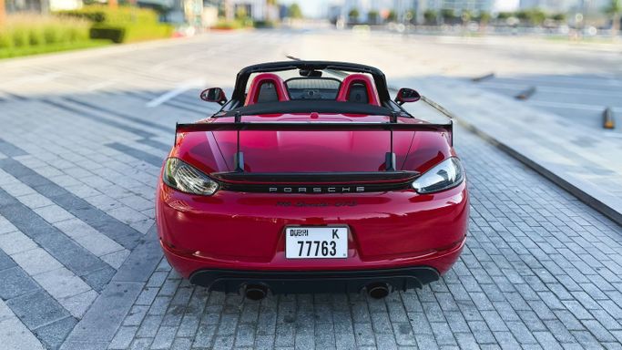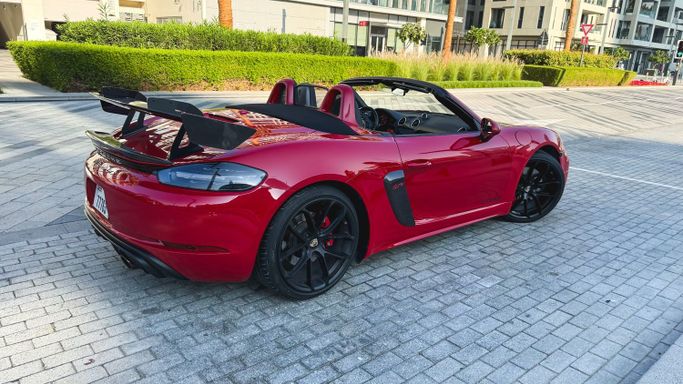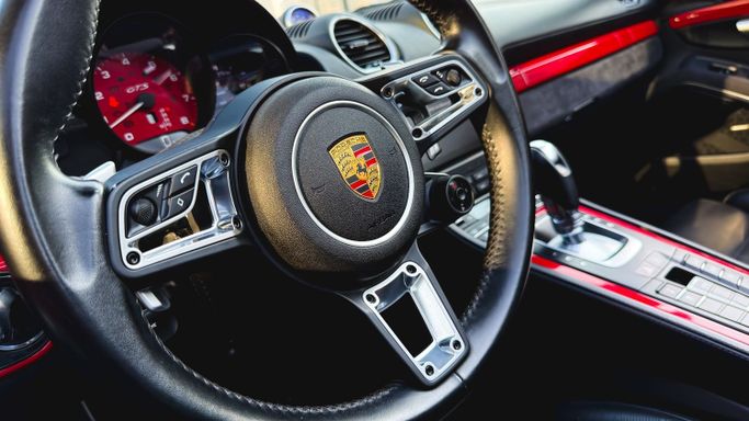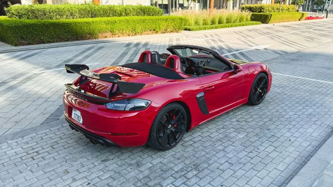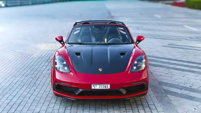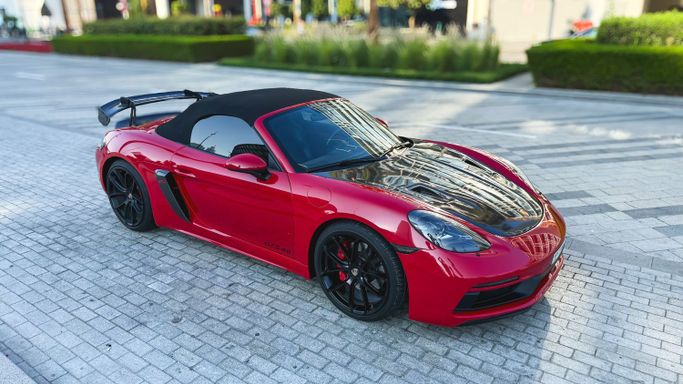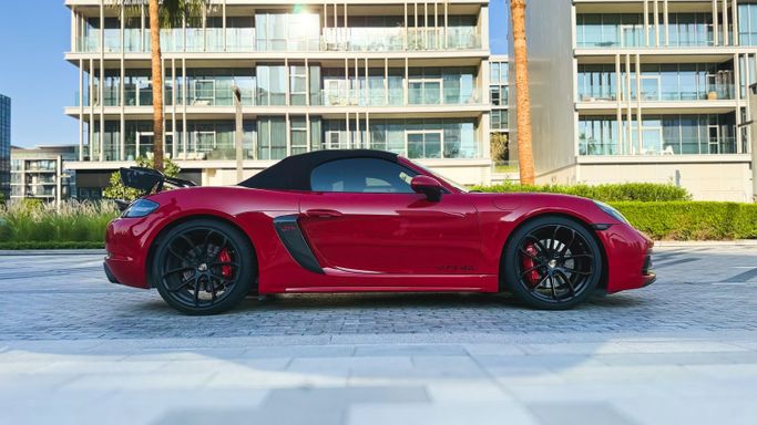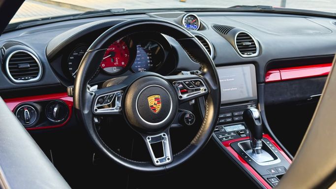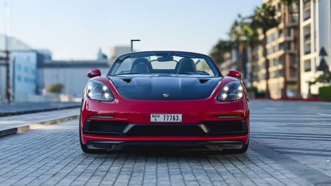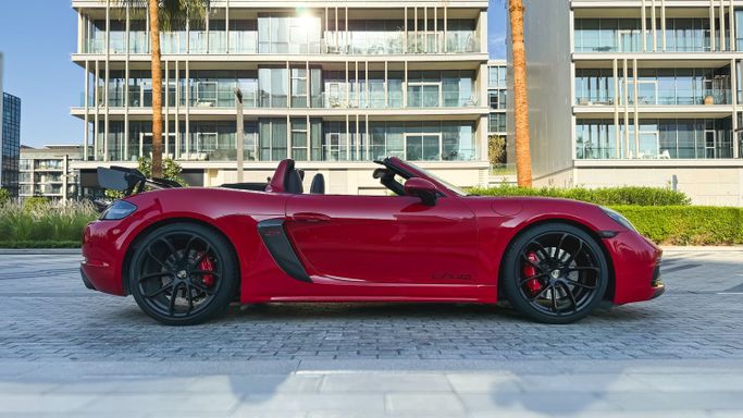 The 2021 Porsche 718 Boxster GTS (IV 718/982) is a compact, mid‑engine roadster that blends a focused driver experience with everyday usability. Powered by a 4.0‑liter flat‑six delivering 400 horsepower, this rear‑wheel‑drive model offers a lively, balanced drive and engages the senses with a crisp chassis and precise steering, all while the automated manual transmission ensures swift, sporty shifts. The red exterior sits against a black interior, and the roadster layout enhances the sense of occasion with open‑air driving and a cockpit designed for driver focus. Inside, th