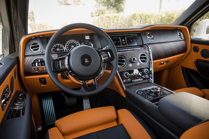 Experience the epitome of luxury and performance with the Rolls-Royce Cullinan, now available for rent at Uptown Rent A Car LLC. Picture yourself gliding through the stunning landscapes of the UAE in this magnificent white SUV adorned with a vibrant orange interior that exudes sophistication. With a powerful 6.7-liter engine delivering an impressive 571 horsepower, the Cullinan accelerates from 0 to 100 km/h in just 5.2 seconds. Its top speed of 250 km/h allows you to traverse the smooth desert highways or navigate the bustling city streets of Dubai with ease and confiden
