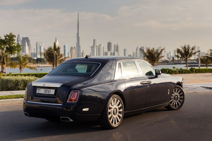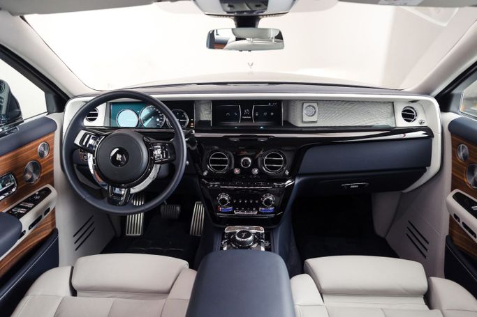 Experience the epitome of luxury with the Rolls-Royce Phantom, available for rent at Uptown Rent A Car LLC. This stunning navy blue sedan, with a contrasting white interior, redefines elegance and sophistication, making it the perfect choice for navigating the stunning landscapes of the UAE. Whether you're cruising along the shimmering coastlines of Dubai or attending an exclusive event, the Phantom ensures that every journey is unforgettable. With a powerful 6.7L engine producing 571 horsepower, this masterpiece accelerates from 0 to 100 km/h in just 5.3 seconds. Imagine