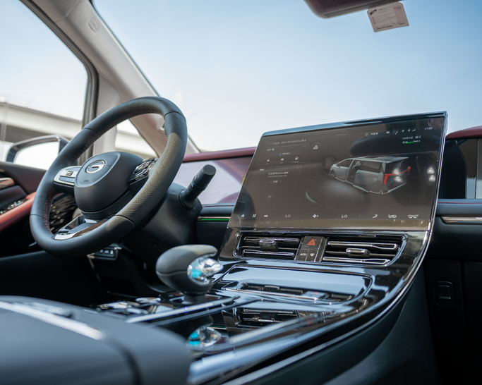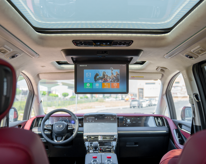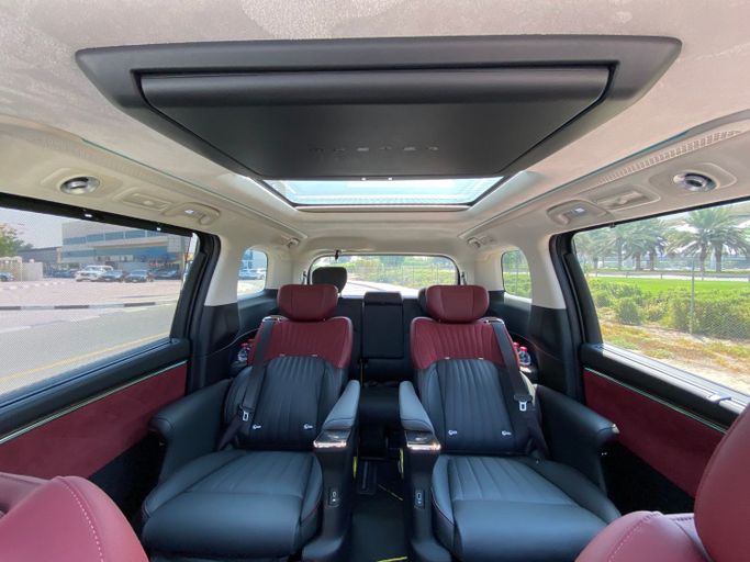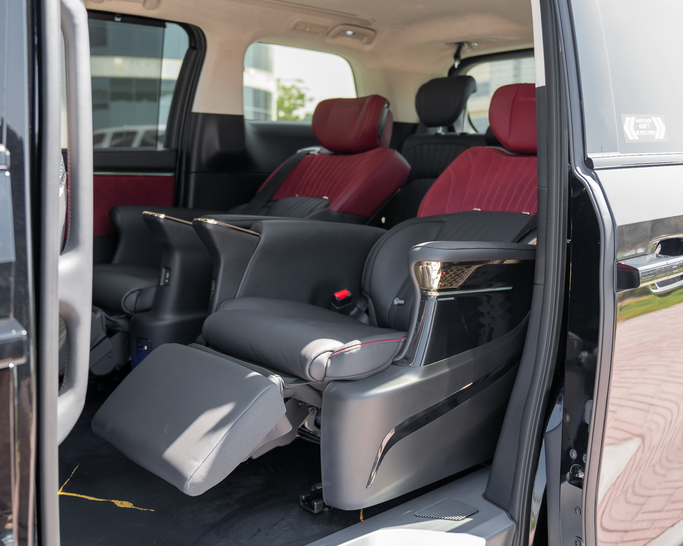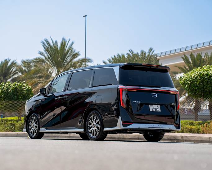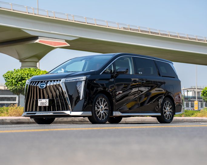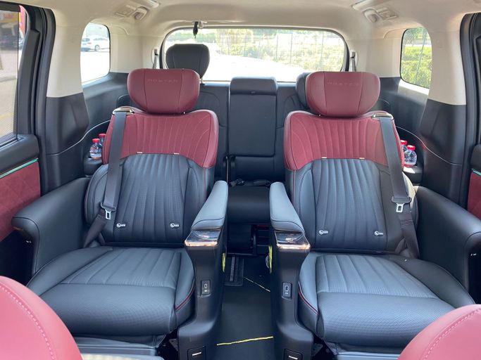 Introducing the 2023 Trumpchi E9, Generation I, a black mini van from One by One Car Rental - Angelyn, with a burgundy interior that balances practicality with a quietly upscale feel. Under the hood, a 2.0-liter engine delivers 373 hp, paired with an automatic transmission and front-wheel drive for smooth, confident acceleration and easy handling in a range of driving conditions. The spacious minivan body offers flexible seating and cargo options, making it well suited for family trips, group travel, or everyday errands. The exterior's sleek black finish and the warm burgun
