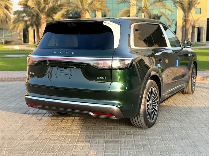 AITO M8 Ultra powered by Huawei — Green with Beige interior Available for personal order Main features: - Video projector for back passenger - Huawei Sound System 25 speakers - Head Up display - Alcantara headliner - Zero Gravity mode for the right back passenger - Massage seat on the first and second row - Rims R21 - Refrigerator - Autoparking assistance - Autopilot The AITO M8 is a premium SUV that combines modern design, advanced technology, and outstanding comfort. With its spacious interior, refined materials, and intelligent features, it provides both drive