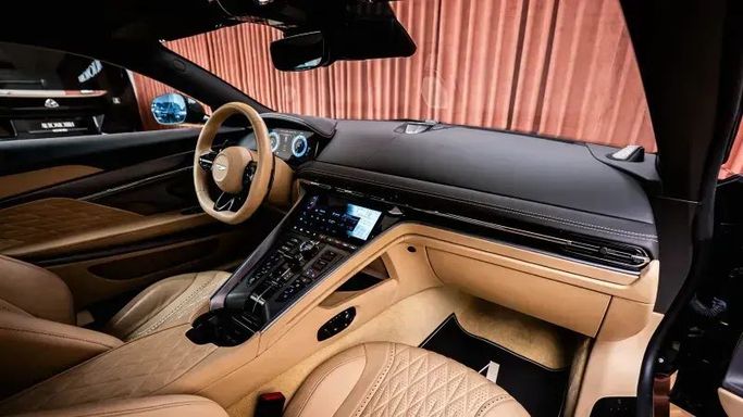 The Aston Martin DB12 redefines what it means to be a grand tourer—power, poise, and presence in perfect harmony. Finished in British Racing Green with a beige interior, this configuration exudes timeless elegance, blending heritage with contemporary sophistication. Beneath the sculpted lines lies a twin-turbo V8 delivering 671 hp—providing a surge of effortless performance that is both refined and thrilling. Inside, craftsmanship takes center stage, featuring Bowers & Wilkins sound, ventilated seats, and exquisite detailing that surround you in quiet luxury. On Dubai's roa