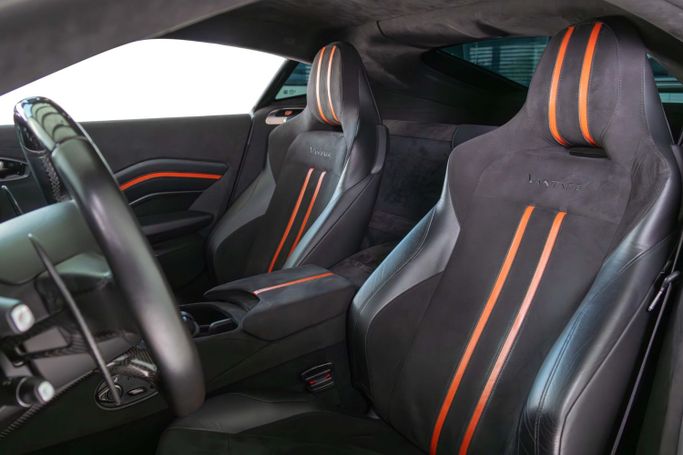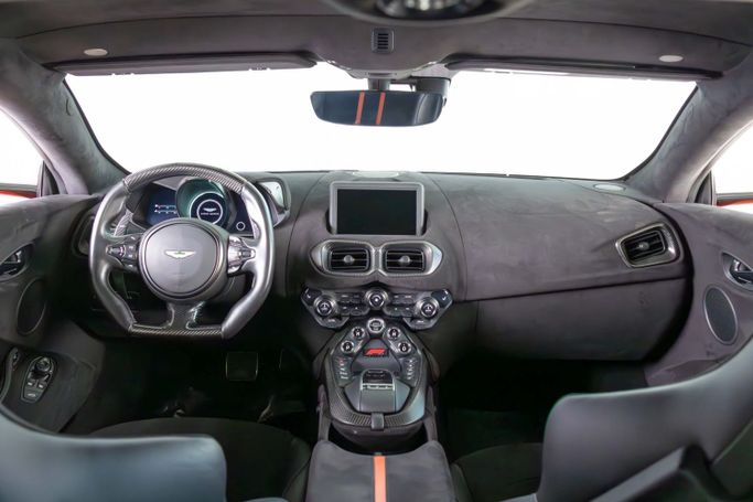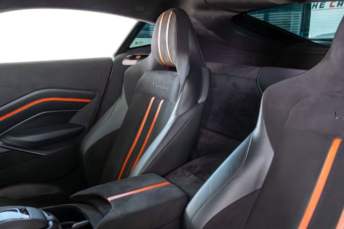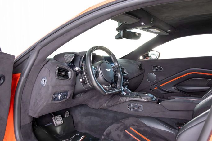 Aston Martin ️MODEL : Vantage ️M/Y : 2020 ️MILEAGE : 20,111 KM ️EXTERIOR COLOR : Metallic Orange ️INTERIOR COLOR : Black -Warranty available ️SPECS : GCC ️OPTIONS : Carbon fiber rear diffuser Sports Air Intake F1 kit Carbon front splitter Carbon air vents Rear spoiler Light weight alloy rims Orange brake calipers Alcantara interior package Carbon fiber interior trim Carbon Fiber steering wheel 360 degree view camera system Black stitching Orange inserts in doors and seats Active sports exhaust system Blind spot monitoring system ️ENGINE : 4.0L Twin Turbo ️CYLINDERS : V8 ️