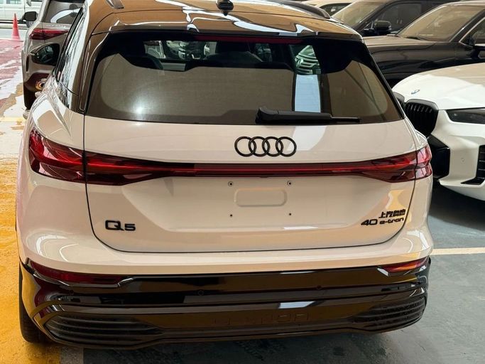 Audi Q5 40 e-tron, SUV, 5Doors, Electric Engine, Heads up Display, Open Panoramic Roof, Radar, Front Electric Seats with Heated Steering, 7Seats, 19 inch Alloy Wheel, Color White, Model 2024. This Chinese-spec model arrives in a clean white finish, featuring a five-door body and a rear-wheel-drive layout paired with an automatic transmission. The powertrain delivers 150 kW and 204 horsepower, providing responsive acceleration for daily driving while maintaining efficiency. The base 40 trim signifies a balanced approach to range and features, delivering a calm and composed r