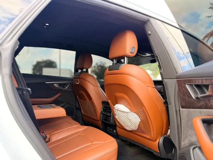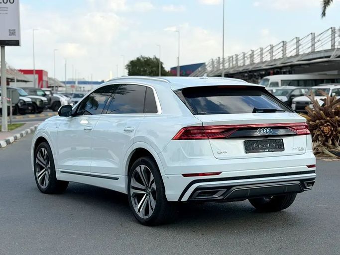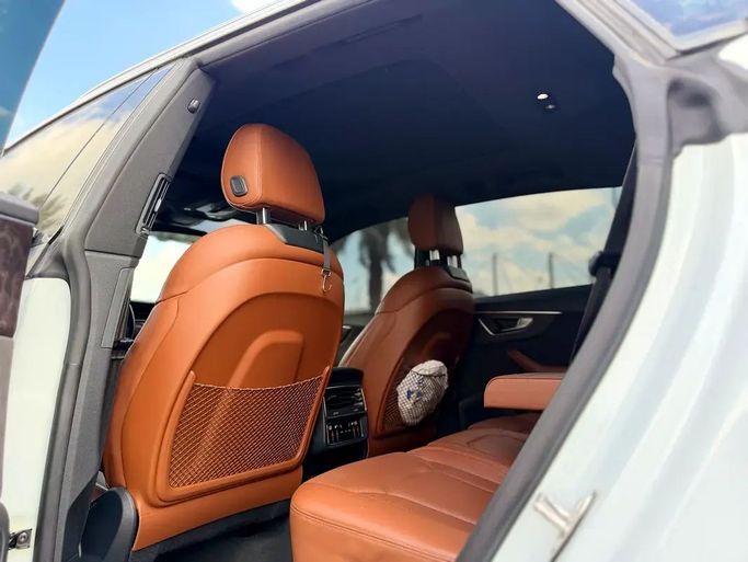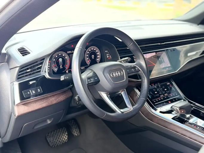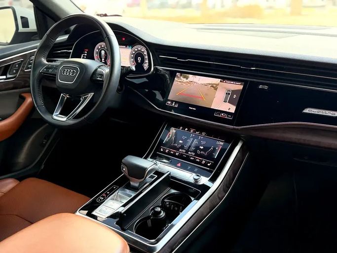 This 2019 Audi Q8, generation I (4M), is a used white 5-door SUV powered by a 3.0-liter TFSI V6 that delivers 340 horsepower, paired with an automatic eight-speed transmission and quattro all-wheel drive. With a single previous owner and 128,000 km on the clock, it offers a balanced blend of performance, comfort, and everyday practicality. The GCC-spec configuration provides regional suitability and features suited to the market. Inside, the cabin emphasizes quiet, refined comfort with supportive seating and a premium feel, backed by advanced infotainment and driver-assista