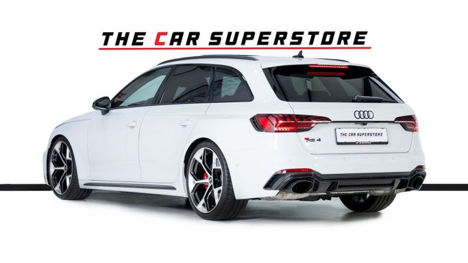 ️Audi ️MODEL : RS4 Avant ️M/Y : 2024 ️MILEAGE : 3,305 KM ️EXTERIOR COLOR : White ️INTERIOR COLOR : Black -Al Nabooda Warranty & Service Contract ️SPECS : European ️OPTIONS : High gloss black styling package Red brake calipers Carbon Fiber FrontSplitter and side vents Carbon Fiber Side skirts Cabon fiber rear diffuser Carbon Fiber Sports RS bucket seats Machine polished rims Led headlights Active sports exhaust Adaptive cruise control Apple carplay/Android auto Exclusive seat belts with red accents Carbon fiber interior trim Bang & Olufsen High end Sound system Head-up disp