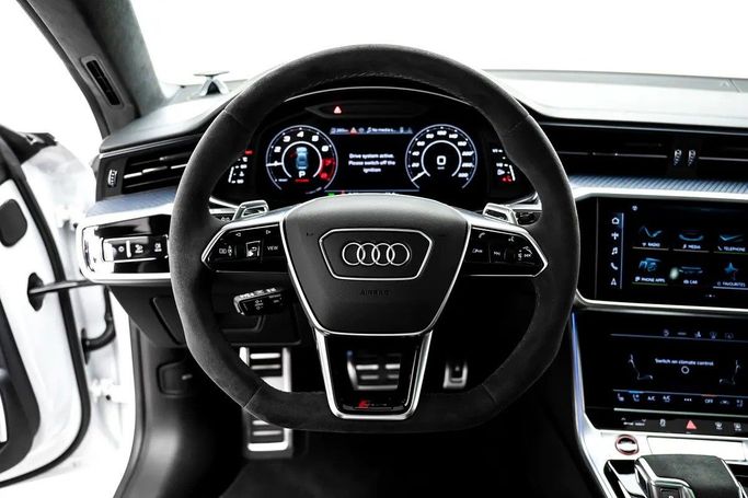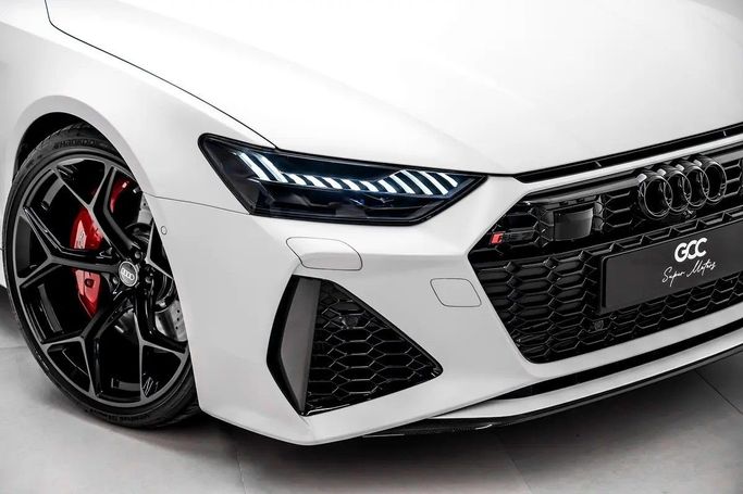 GCC SPECS WARRANTY - SERVICE CONTRACT 2030 - 2024 AUDI RS7 PERFORMANCE 621 HP 2024 AUDI RS7 PERFORMANCE 4.0 TFSI V8 QUATTRO GCC SPECS AL NABOODAH AUDI FACTORY WARRANTY VALID UNTIL JANUARY 2030 OR 150000 KM SERVICE PLAN VALID UNTIL JANUARY 2030 OR 75000 KM EXCELLENT CONDITION - NO ACCIDENTS - ORIGINAL PAINT EXTERIOR COLOR: WHITE PEARL INTERIOR TRIM: BLACK LEATHER WITH BLUE ACCENTS BLACK AND BLUE CARBON FIBRE INTERIOR ACCENTS OPTIONS • QUATTRO ALL WHEEL DRIVE • PREMIUM BANG AND OLUFSEN 3D SOUND SYSTEM • RS ADAPTIVE AIR SUSPENSION • ACTIVE ALL WHEEL STEERING • LIMITED