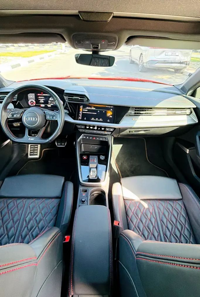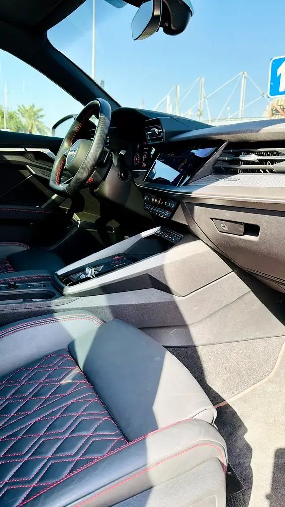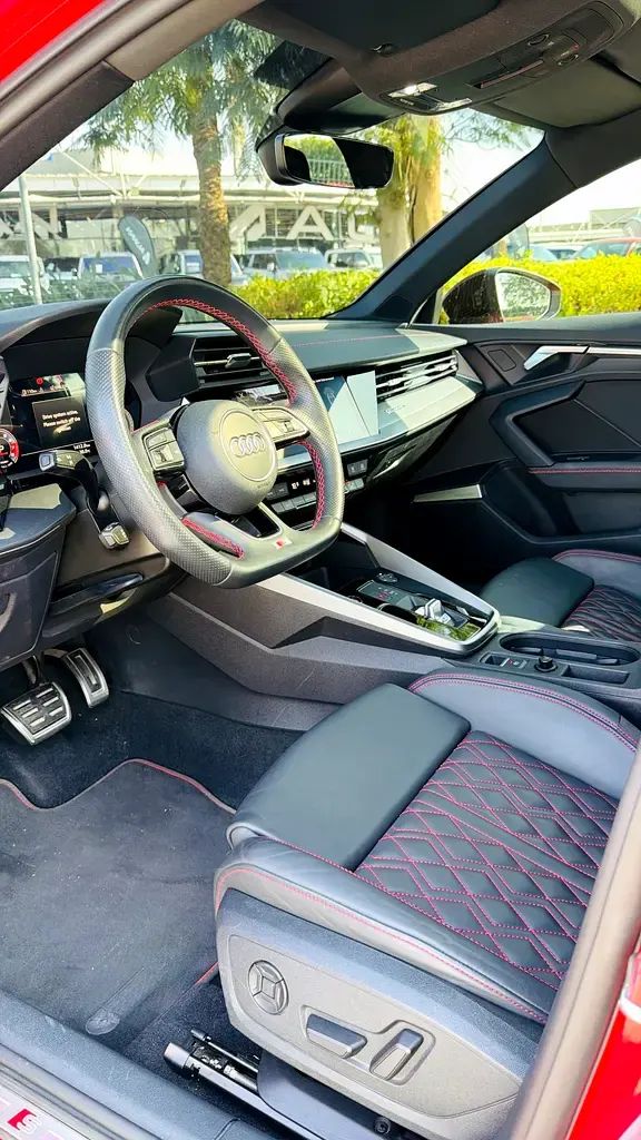 This 2024 Audi S3 IV (8Y) is a one-owner GCC-spec hatchback finished in a vivid red, powered by a 2.0-litre petrol engine producing 290 hp and paired with an automated manual transmission. With about 40,000 km on the clock, it combines everyday practicality with refined, driver-oriented dynamics characteristic of Audi, while all-wheel drive provides confident handling in varied conditions. The five-door layout offers everyday usability without sacrificing hatchback practicality, and the GCC specification ensures regional compatibility and equipment. Inside, the cabin emphas