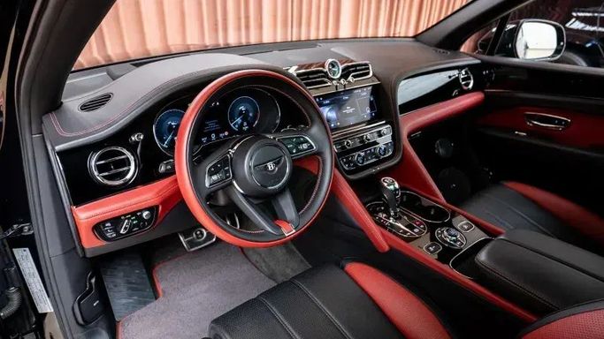 The Bentley Bentayga V8 S perfectly blends grand touring luxury with dynamic performance. Finished in a black exterior with a black and red interior, this configuration exudes refined strength—elegant yet bold, with a distinctive sporting edge. Under the hood, the 4.0-liter twin-turbo V8 delivers 542 hp, offering effortless acceleration and a deep, confident soundtrack. Inside, the contrast of red accents against fine black leather creates an atmosphere of power and sophistication. This luxury SUV is designed for those who value presence, craftsmanship, and emotion in every