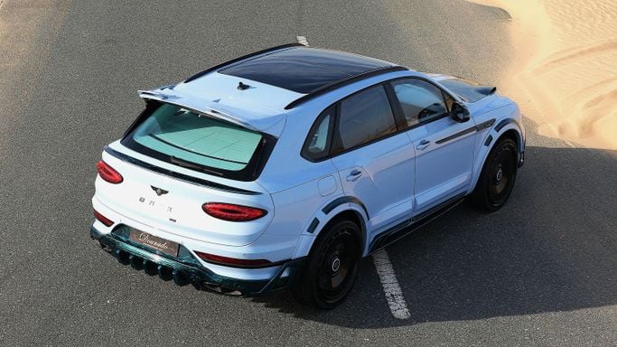 Bentley Bentayga S by Onyx Concept 1 of 5 | 3-Year Warranty and Service New 2024 4.0L / V8 Cylinder 8 Speed Automatic Transmission 542 Horsepower All Wheel Drive European Specs Exterior Colour SPECIAL PAINT: JETSTREAM 2 Interior Colour BABY BLUE --------- Additional Features --------- - Main Hide Baby Blue Onyx Carpets Baby Blue Onyx / Emblem Stitching Baby Blue / Seat Piping in Beluga Black / LED Welcome Lamps - Touring - Carbon Fiber Interior Pack - External Mirrors with Heating System - Power Folding - Auto Dimming and Memory Function - LED Headlamps with Variable Li