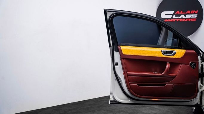 Pre owned Bentley Continental Flying Spur 2006 - GCC for sale in Dubai by Al Ain Class Motors. 12 cylinder engine, white exterior and automatic transmission. Comes with 20″ wheels and red interior. 47,186 kilometers on the odometer, GCC specs.