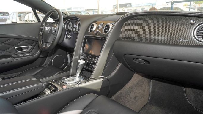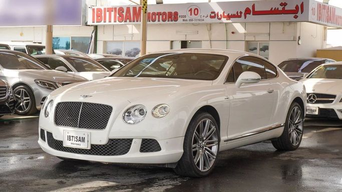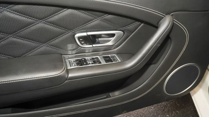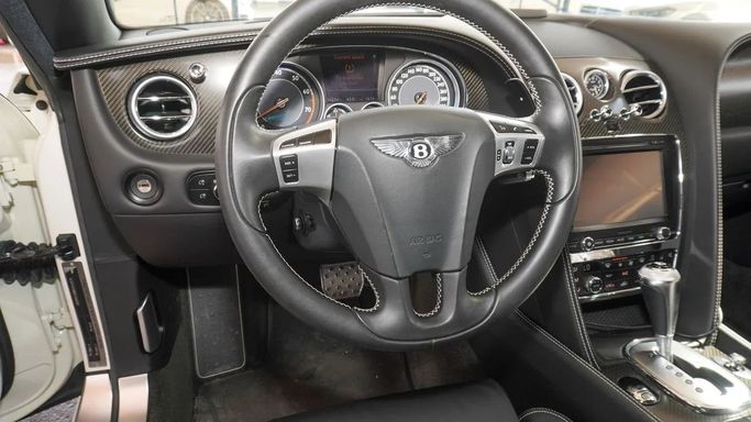 Bentley Continental GT. 12 cylinder engine, white exterior and automatic transmission. Comes with 20″ wheels and black interior. 34,000 kilometers on the odometer, Japanese specs.