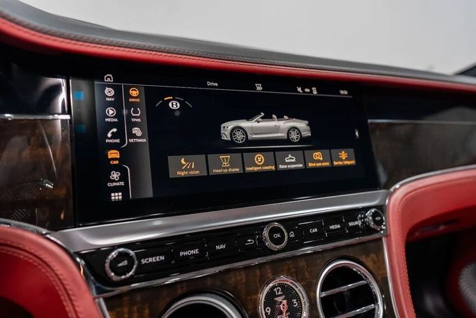 BENTLEY CONTINENTAL GTC W12 FIRST EDITION APPEARANCE EXTERIOR: - Window Trim: Chrome - Door Handle Color: Body-Color - Rear Bumper Color: Body-Color - Body Side Moldings: Chrome - Grille Color: Chrome - Exhaust: Integrated - Exhaust: Dual Tip - Mirror Color: Body-Color - Front Bumper Color: Body-Color CONVENIENCE: - Vanity Mirrors: Dual Illuminating - Power Steering: Variable/Speed-Proportional - Rearview Mirror: Auto-Dimming - Power Outlets: 12V Front and Rear - One-Touch Windows: 2 - Steering Wheel Mounted Controls: Cruise Control - Center Console: Front Console with Ar