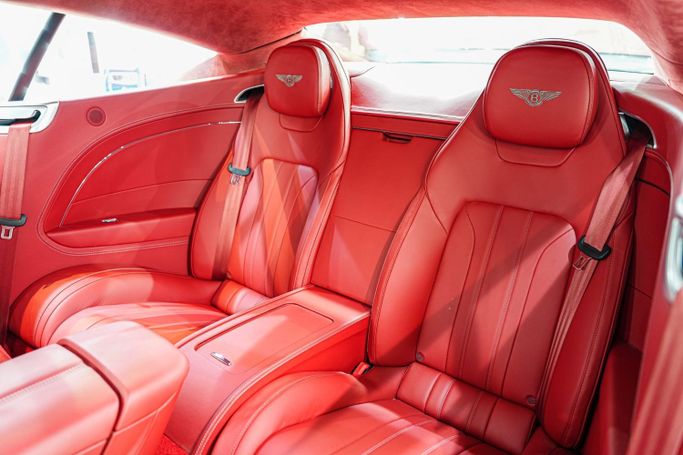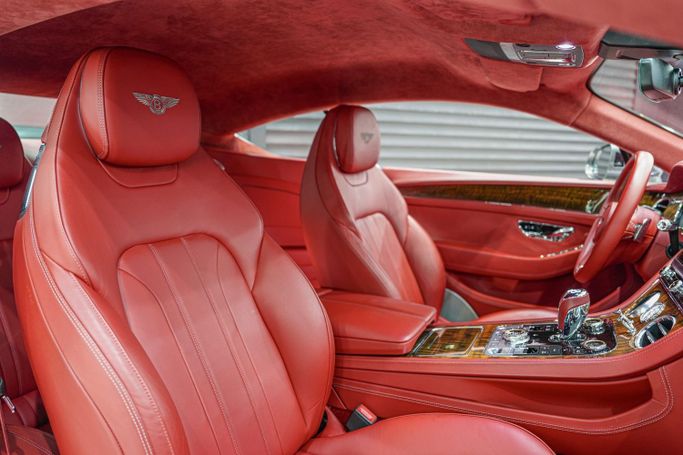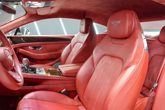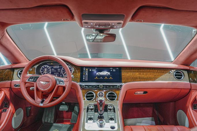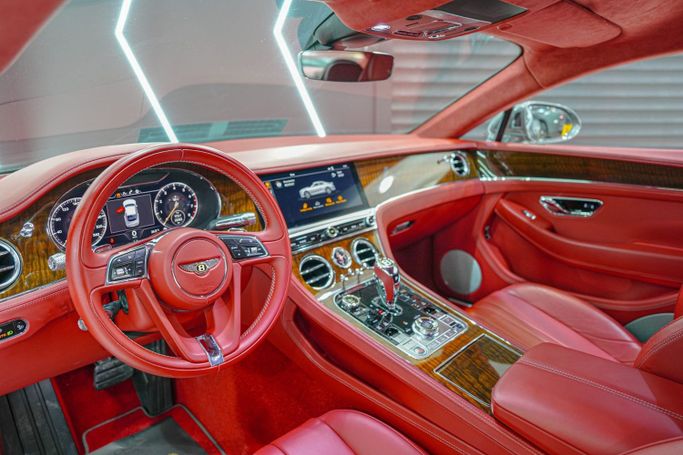 Bentley Continental GT W12 GCC Specifications Centenary Gold front and rear badging matched with special center wheel badges and steering wheel badge Centenary treadplates '1919 – 2019' on door sills Bright chrome lower bumper matrix style grille Rear spoiler extender Welcome lighting Wood veneer trim Alcantara headliner Heated seats Embroidered Bentley emblems Apple CarPlay Raising suspension Driver assist features Blind spot assist 360° camera 21-inch wheels