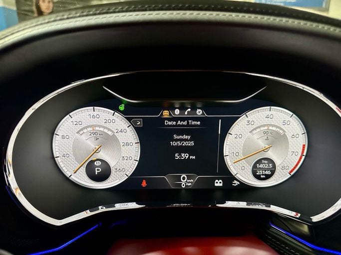 2022 Bentley Continental GT Mulliner V8 First owner in the UAE · Accident-free · Only windshield replaced Covered by Spectrum German Auto warranty – 12 months (extendable). Mulliner specification with handcrafted red & black diamond-stitched leather interior, illuminated “MULLINER” sills, ambient lighting, and Bentley projection lamps. addons: - Equipped with Viofo dashcam, - full PPF protection film, - exclusive blue-tinted mirrors on both sides — a rare Mulliner feature enhancing visibility and aesthetics( original ones also are available). - brand new tires with 5 year