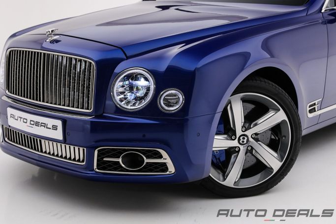 This 2017 Bentley Mulsanne Speed II Facelift in blue is a full-size luxury sedan that embodies quiet presence, refined craftsmanship, and long-distance comfort. Under the hood, the Speed-modified 6.8-liter V8 delivers 537 horsepower, paired with an eight-speed automatic transmission and rear-wheel drive for calm, confident acceleration and smooth highway cruising. GCC-spec equipment ensures the model aligns with Gulf-market requirements, while the interior showcases Bentley’s hallmark materials, generous rear cabin space, and meticulous details that invite relaxed journeys.