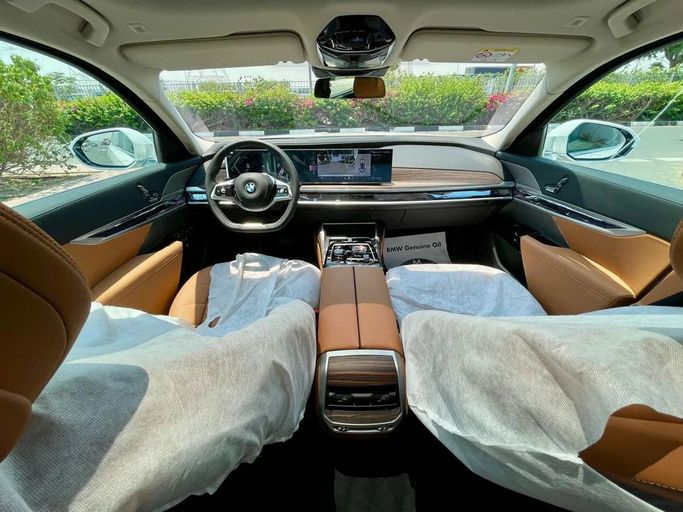 New BMW 735i Under Warranty & Service 2026 GCC for sale in Dubai. The car is full of great options like navigation, climate control, Bluetooth, and leather seats (see photos). This 2025 BMW 735 19" wheels and Brown interior.