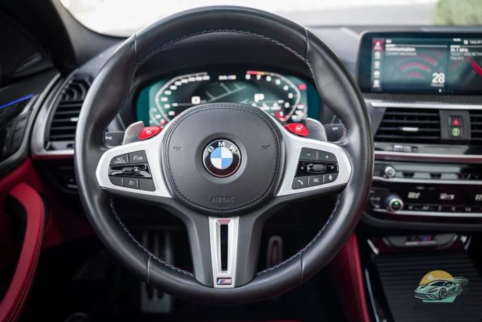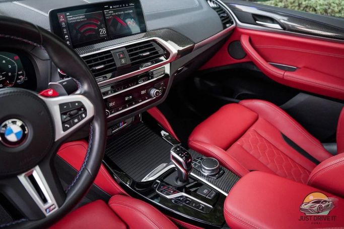 BMW X4M Competition 2021 GCC | 35K kms | Warranty + Service until 2027 | Cartier Red | Full Carbon 2021 BMW X4M Competition | GCC Specs | Warranty & Service Contract until July 2027 | Only 35,000 kms | Full Options An absolutely stunning BMW X4M Competition finished in Dark Grey Metallic with rare Cartier Red Interior, one of the best looking and best specified X4M on the market. This car is GCC specifications, extremely well maintained and comes with BMW warranty and service contract until July 2027, giving the next owner complete peace of mind. With only 35,000 kms, th