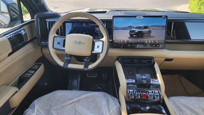 We present to your attention the new BYD FangChengBao Leopard 5, built in 2024. This SUV with a five-door body attracts with its stylish and aggressive design, which emphasizes power and confidence on the road. The standard black color adds rigor and elegance to the car, making it an ideal option for both urban environments and off-paved roads. Under the hood of the FangChengBao Leopard 5 is a 687 horsepower hybrid engine that combines fuel economy and dynamic driving. All-wheel drive and CVT ensure smooth gear shifting, which makes the ride comfortable regardless of road