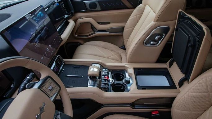 BYD Leopard 8 for sale UAE .The BYD Leopard 8 Smart Brave Flagship Edition is a bold new chapter in luxury off-road SUVs — fusing rugged adventure capability, intelligent hybrid efficiency, and innovative tech like an integrated drone system. As part of BYD’s YangWang high-performance line, the Leopard 8 offers a plug-in hybrid powertrain delivering immense torque and extended range — perfect for the UAE’s deserts, highways, and mountains. Its spare tire carrier design and imposing stance give it an authentic expedition-ready presence. Inside, the Flagship Edition offers fi