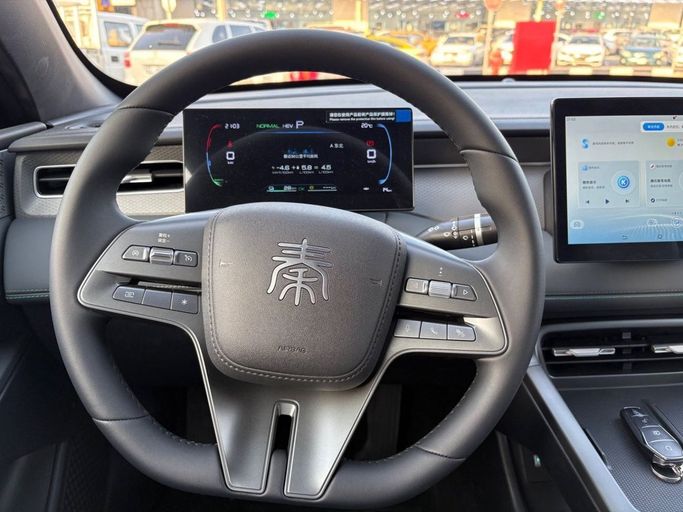 New for 2025, the BYD Qin II DM-i is a compact sedan built to balance efficiency and everyday usability. Powered by a 1.5-liter hybrid drive with a CVT and up to 290 horsepower, it delivers smooth acceleration within a front-wheel-drive layout, while maintaining a refined, quiet ride. The Generation II Qin showcases clean, contemporary styling in white and a cabin designed for comfort and practicality, featuring supportive seating, intuitive controls, and modern connectivity. The DM-i hybrid system emphasizes efficient electric-assisted driving and seamless transitions betw