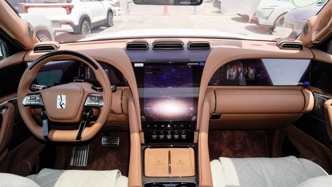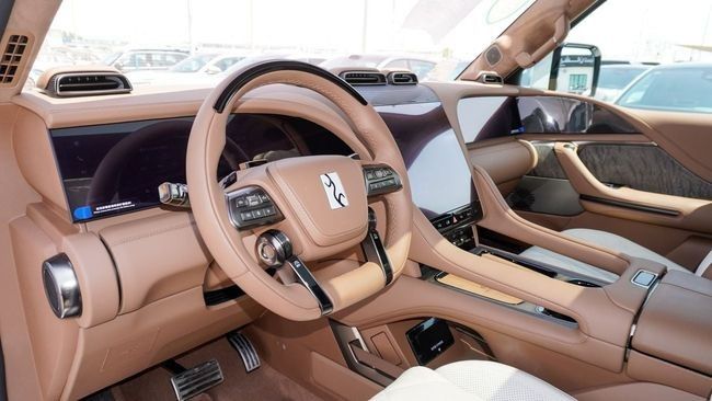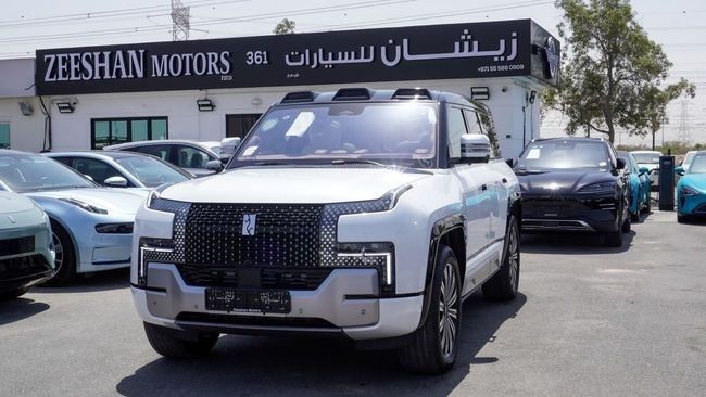 New Yangwang U8 Hybrid for sale from Zeeshan motors FZCO in Dubai. White 2024 model. The car has automatic gearbox, 4 cylinder engine, 22″ wheels and tan interior. Chinese specs. EXPORT ONLY