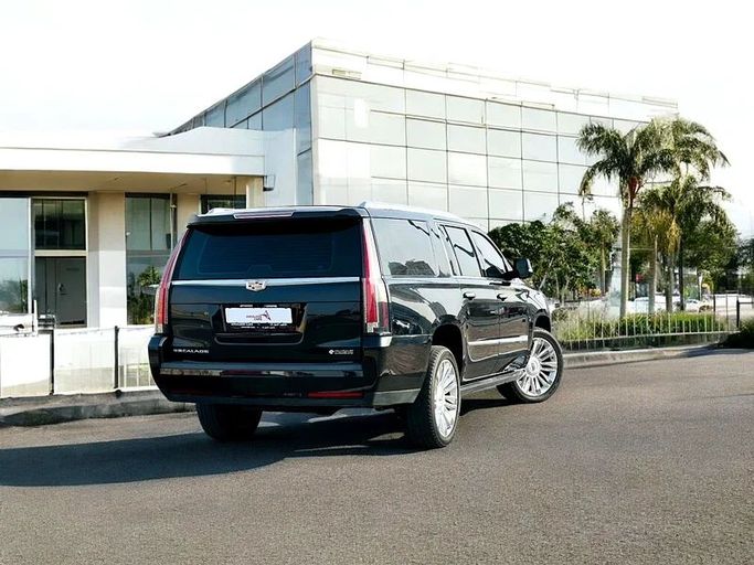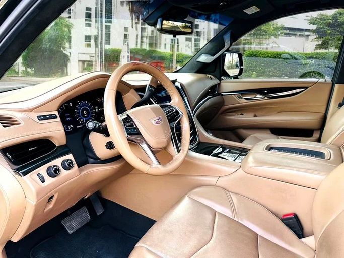 CADILLAC ESCALADE PLATINUM L | 2019 | GCC SPECS | AGENCY MAINTAINED CADILLAC ESCALADE PLATINUM L Model Year: 2019 Specs: GCC Mileage: 85,900 KM Engine: 6.2L V8 4WD – 420 HP Wheel Size: 21" Alloy Wheels Exterior Color: Black Interior Color: Beige KEY FEATURES & PERFORMANCE - Magnetic Ride Control Suspension - LED Headlights with Adaptive Lighting - 16-Way Power Adjustable Seats - Power Folding Mirrors - Adaptive Cruise Control - Drive Mode Selector - HD Rear Vision Camera - Front and Rear Parking Sensors - Panoramic Power Sunroof - Navi